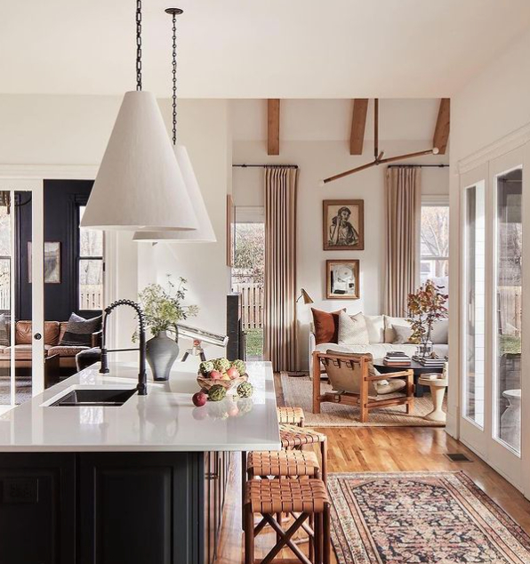 Another key aspect of cottagecore is using a variety of textures in your kitchen. These woven leather bar stools, seen in a post from @laurenbradshawdesign, accomplish all of that and more.