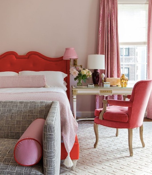 For decor enthusiasts looking to make a different kind of summery statement in their bedroom, consider incorporating some bold cherry-red accents, as we see in this post from @chairishco.
