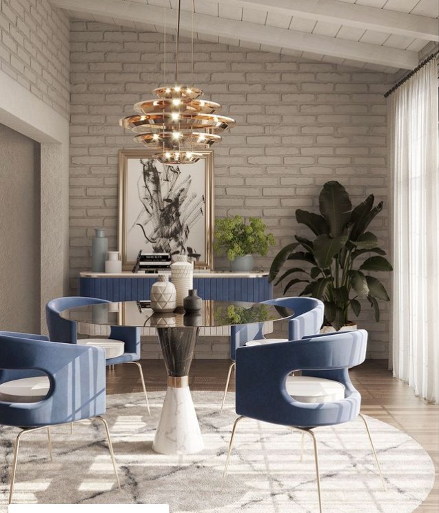 “Eclectic light fixtures are becoming more common in dining rooms because maximalism is having a major moment,” says designer Grace Baena, of Kaiyo. “These bold, unique light fixtures add a fresh, modern touch to any dining room and provide a nice contrast to the vintage dining sets that are so popular right now.”