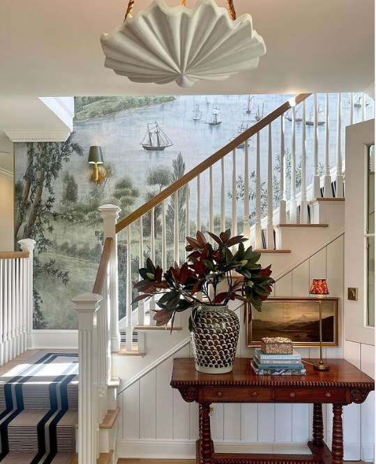 For a work of art that will capture interest on a more vertical plane in your foyer, you might just want to consider a mural like this one from @m_m_interior_design.