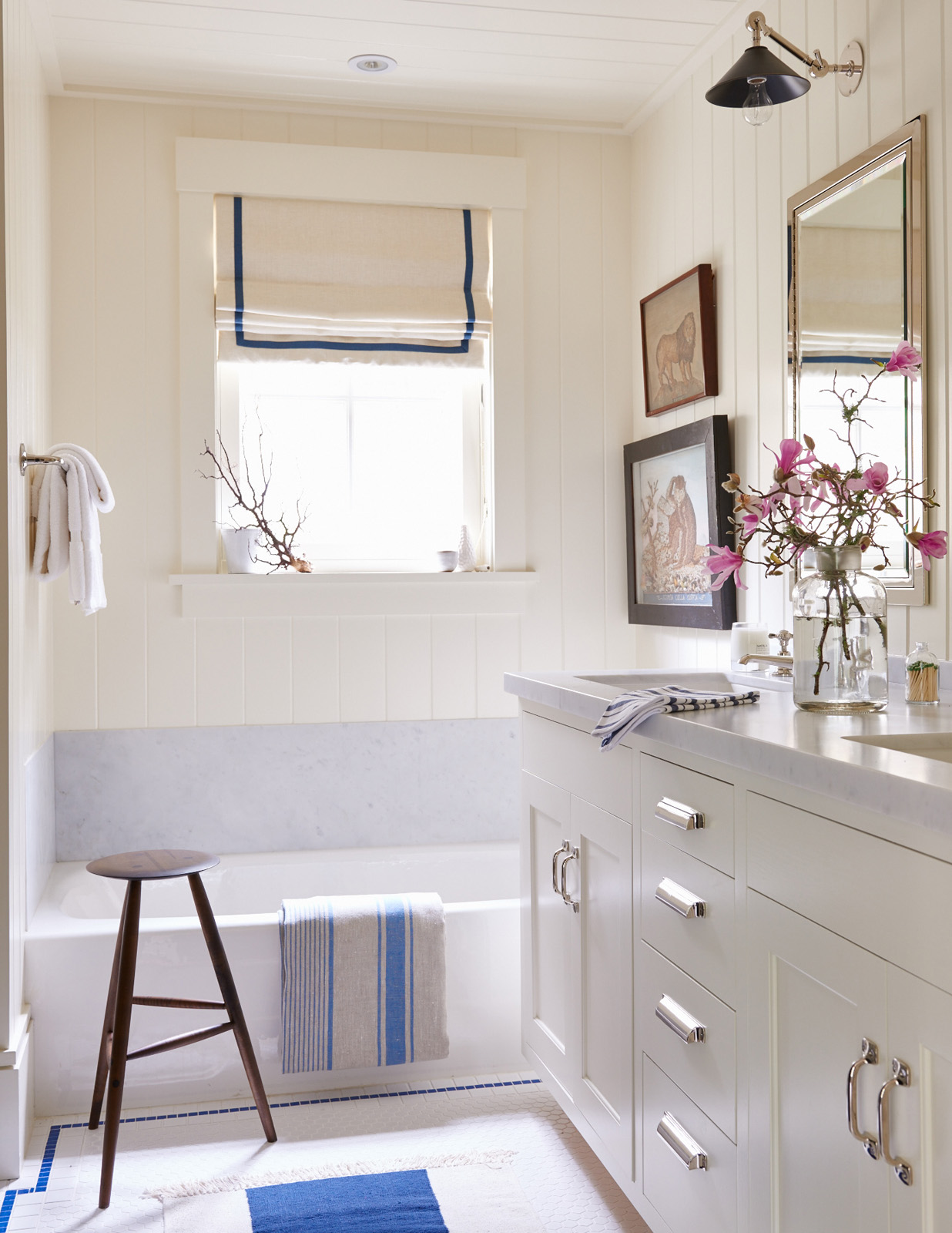 Even a small window added to the bathroom’s exterior wall was small—about 30 by 18 inches—can transform the tight dimensions of the space, flooding it with light and a sense of depth that was previously lacking.