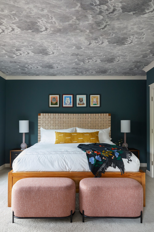 “Whether it’s a wallpapered ceiling or a painted mural, a statement ceiling can add a touch of whimsy and drama to any room,” Bashari adds.