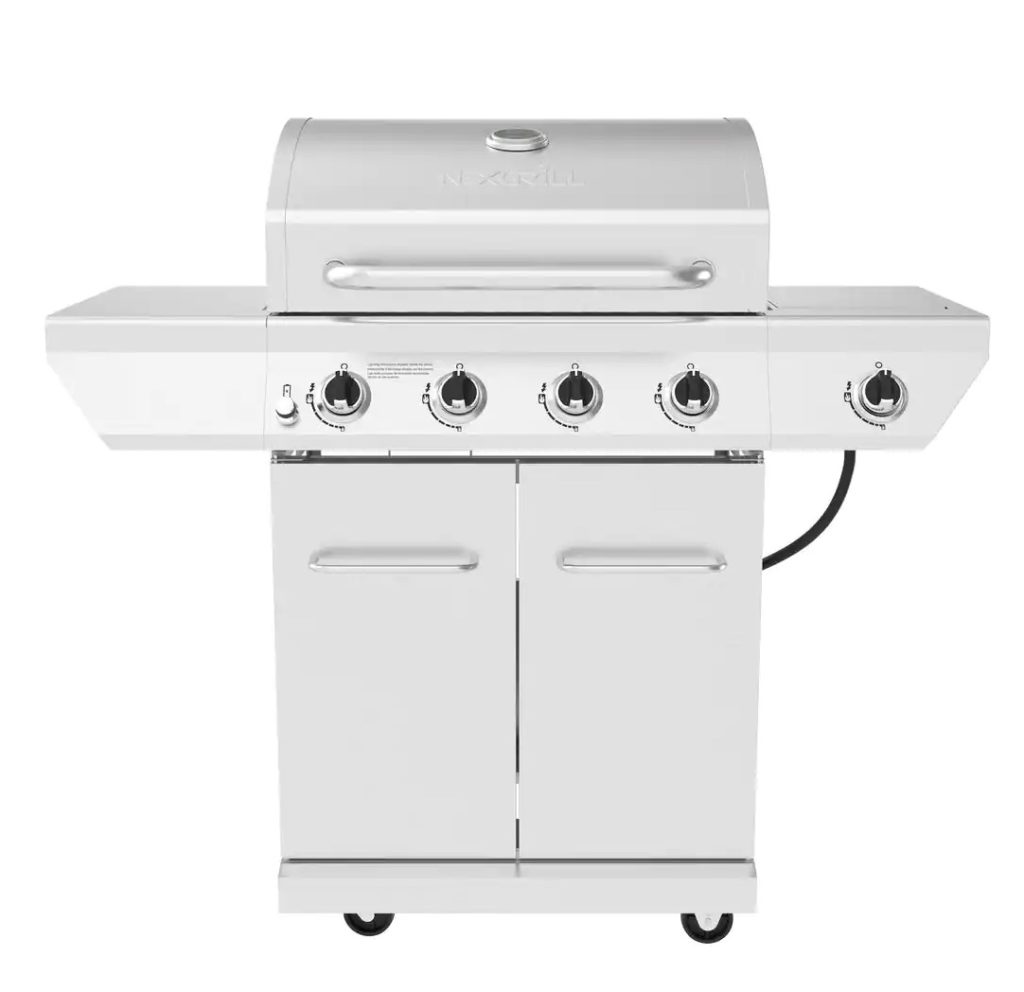 Our pick: With four main burners for bratwurst, plus a side cook spot for heating sauerkraut, this gas rig ($299, The Home Depot) comes with all you need for summer cooking. We also dig the stainless-steel side shelves for prepping burger toppings and the smart warming shelf for cheese melting.