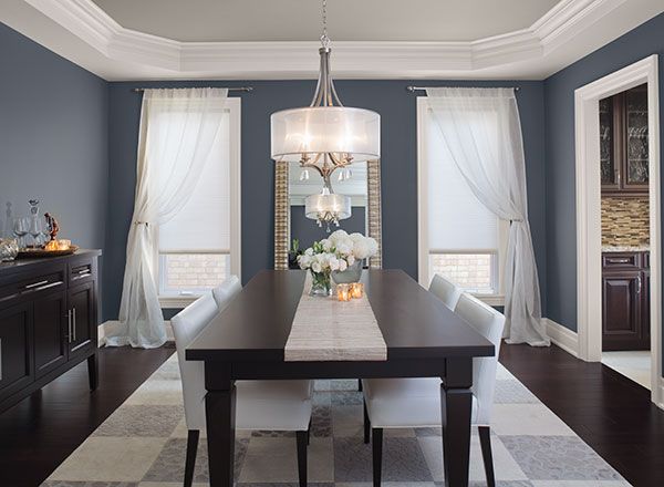 2. Gray-Blue If you lean towards a less vibrant and more sophisticated ambiance, the gray-blue dining room scheme from @alihenrie might be your preference. Cullum suggests Benjamin Moore’s Nimbus Gray, a color that appears more gray in cooler morning and evening light, transitioning to a bold gray in the daytime, accentuated by cool white sconces and a warm wood table for a classic neutral-blue look.