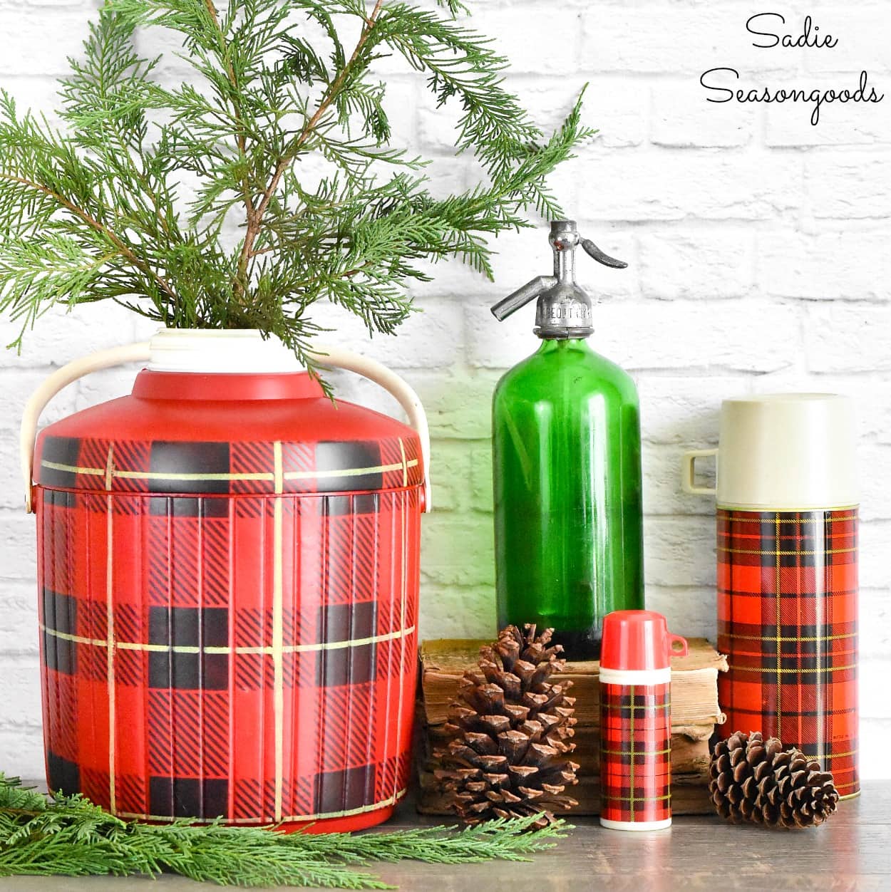 Vintage holiday decor is extremely popular. I love the pop of color this retro thermos brings to this front porch’s color scheme and the nostalgic feeling it evokes. And tartan plaid is a classic and timeless choice for Christmas decorating.
