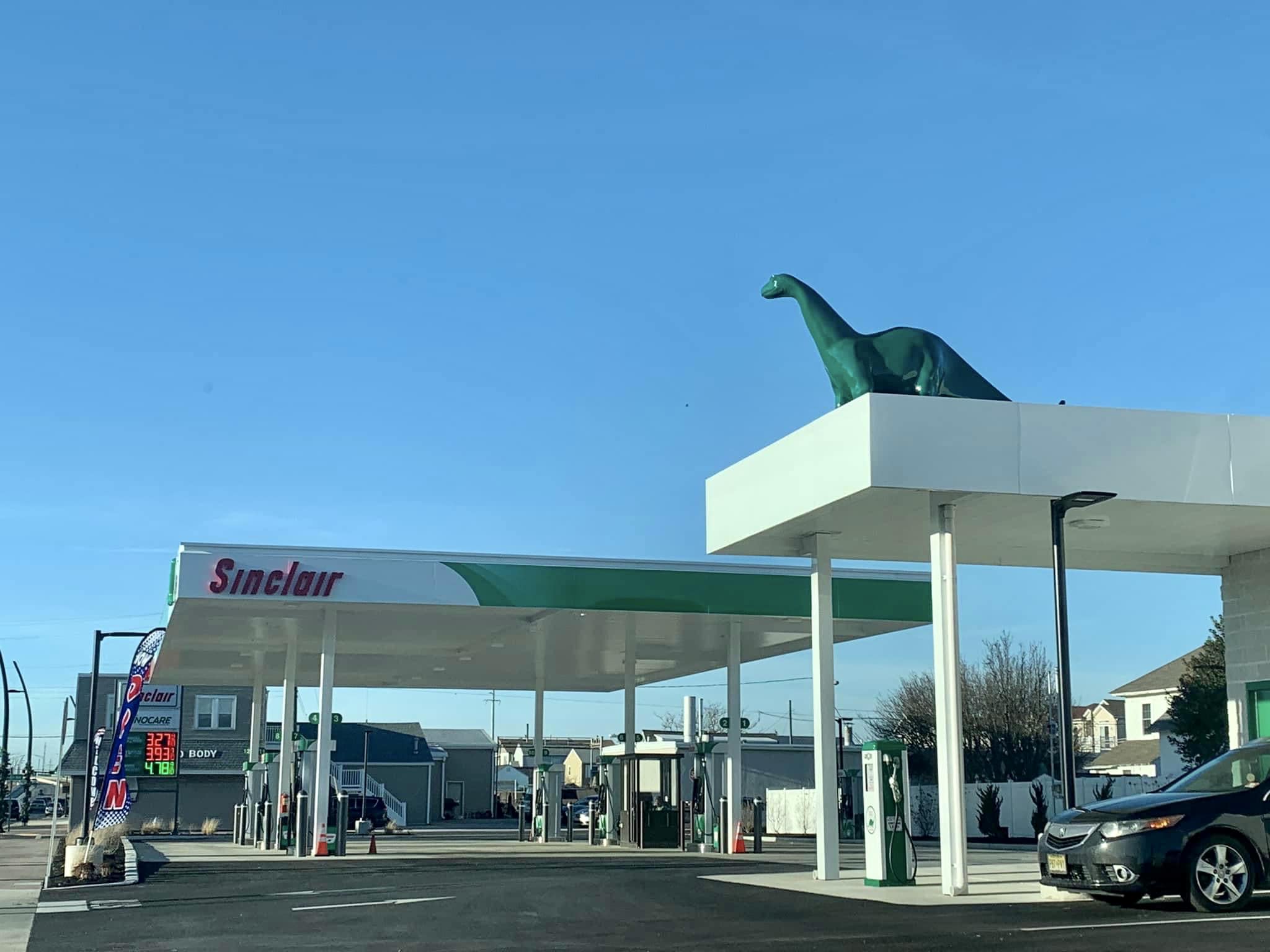 In keeping with the Wildwoods' Doo Wop retro vibe, the Riggins family invested in the creation of a nostalgic and fun experience with first-rate service at Sinclair Gas Station. Sinclair was an early 1900's throwback gas station brand that became a highlight for visitors driving throughout America. Sinclair Gas Stations were popular among children because of their green dinosaur logo, dubbed "Dino." He was featured in advertising and as a statue at every gas station. To pay homage to its famous past, the new Sinclair station includes a retro sign, old fashioned gas pump and yes, Dino!