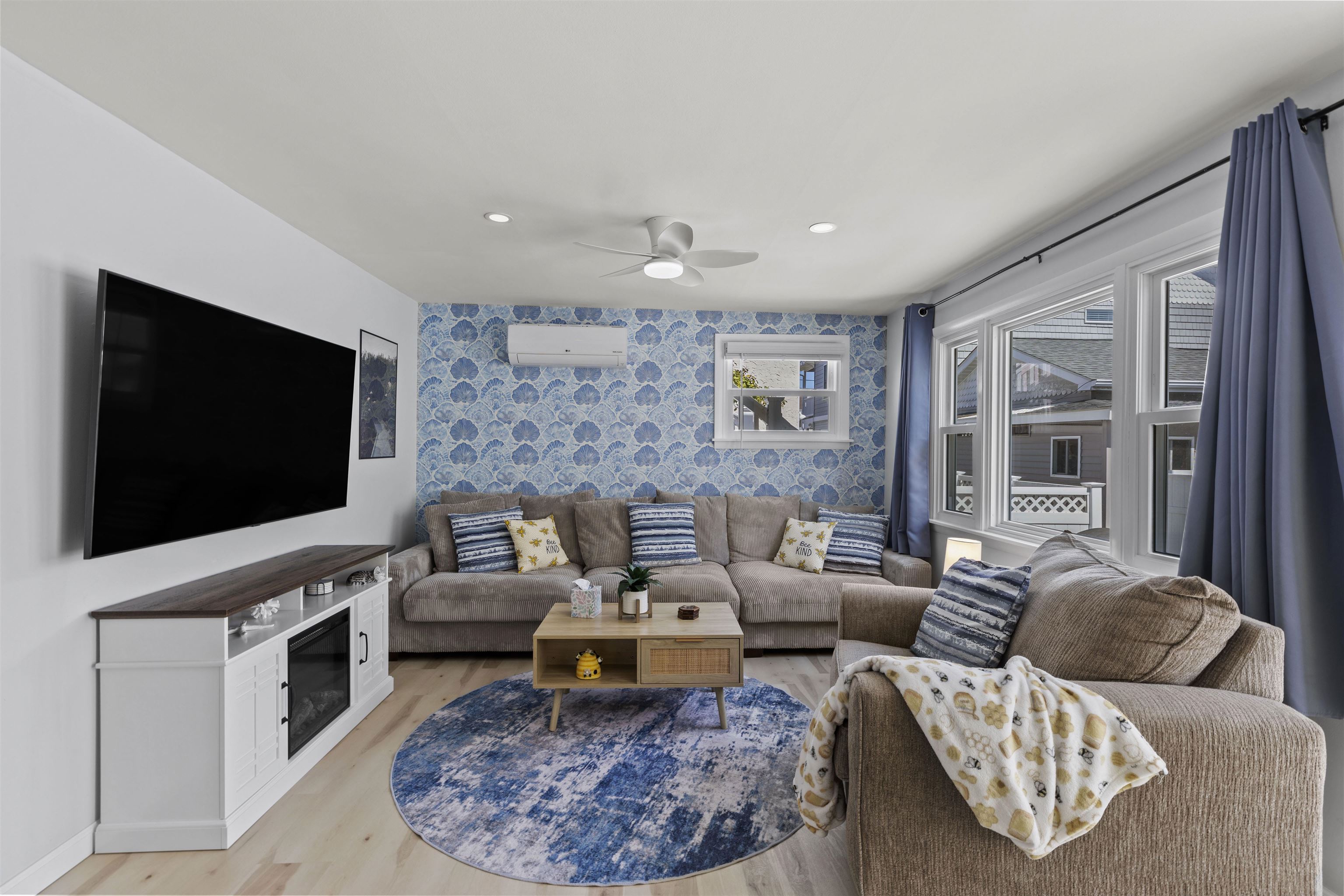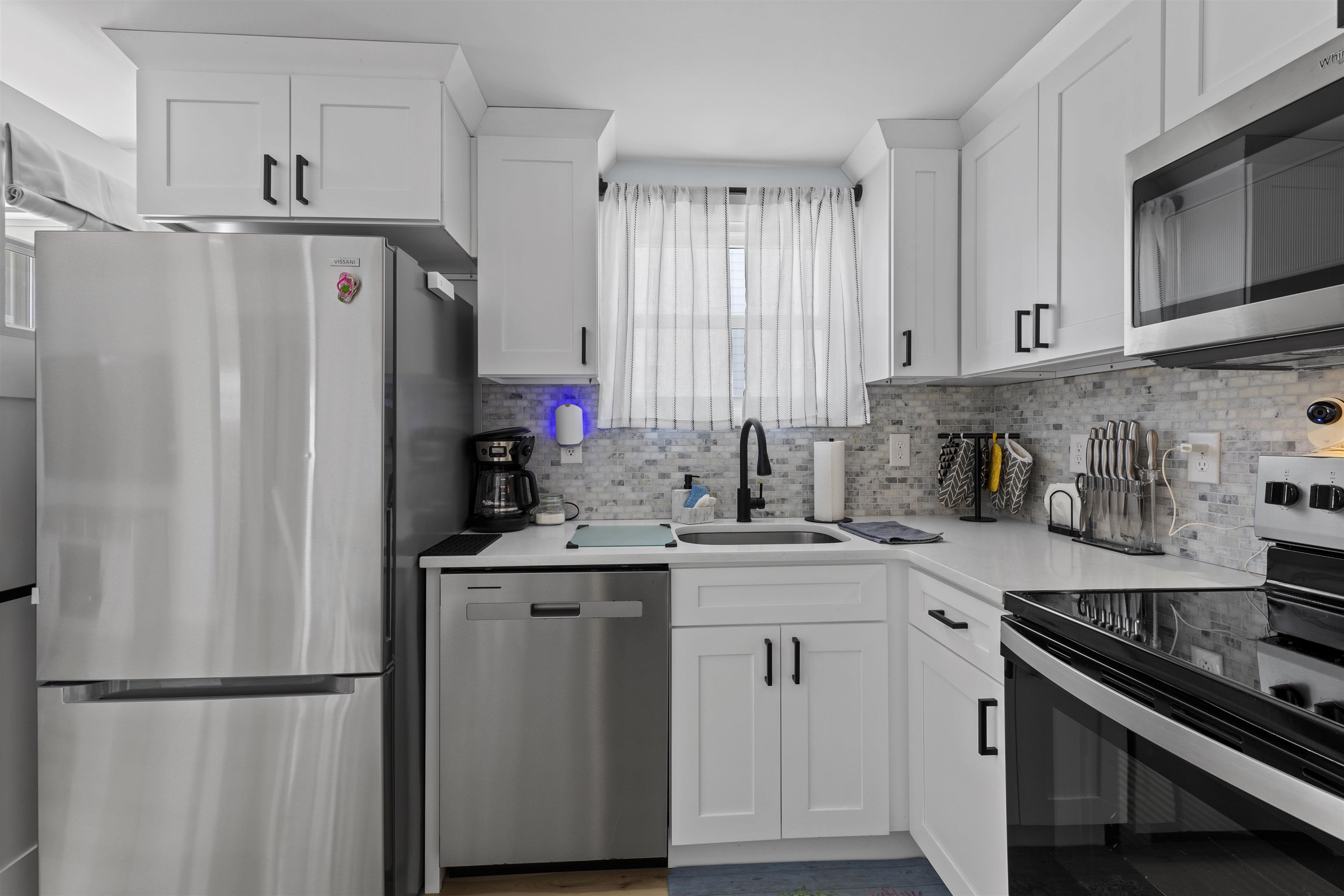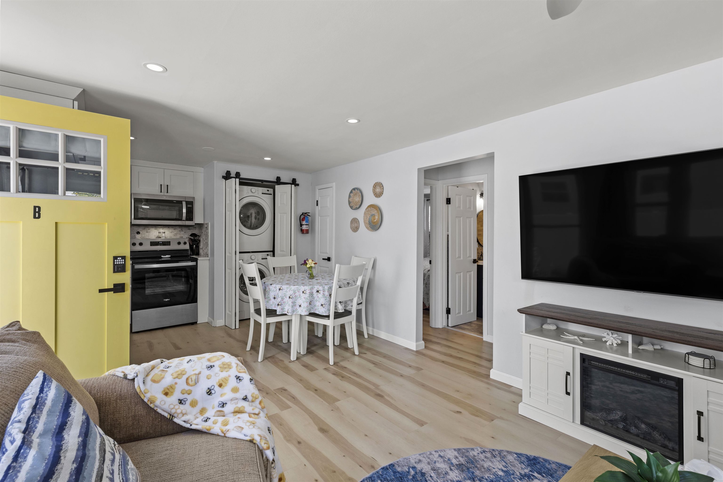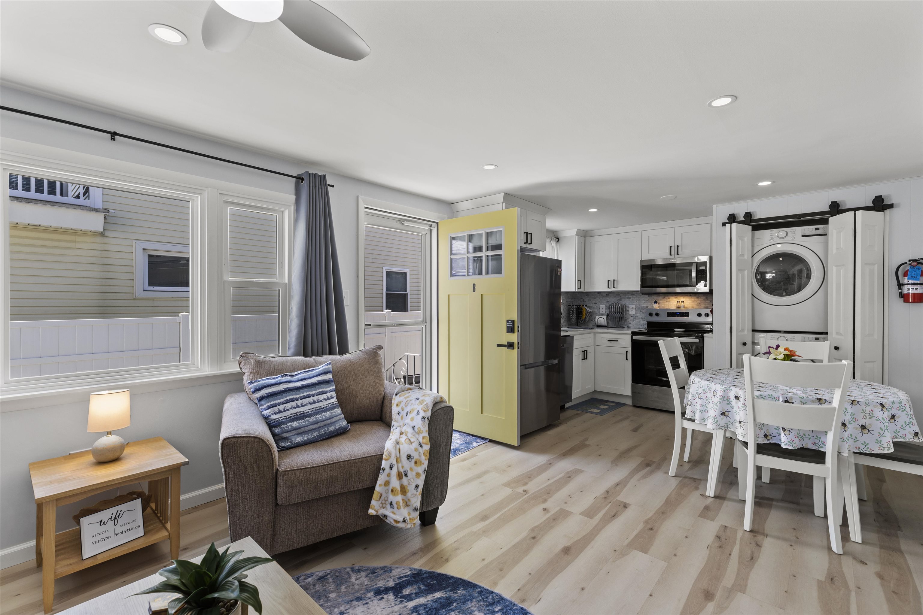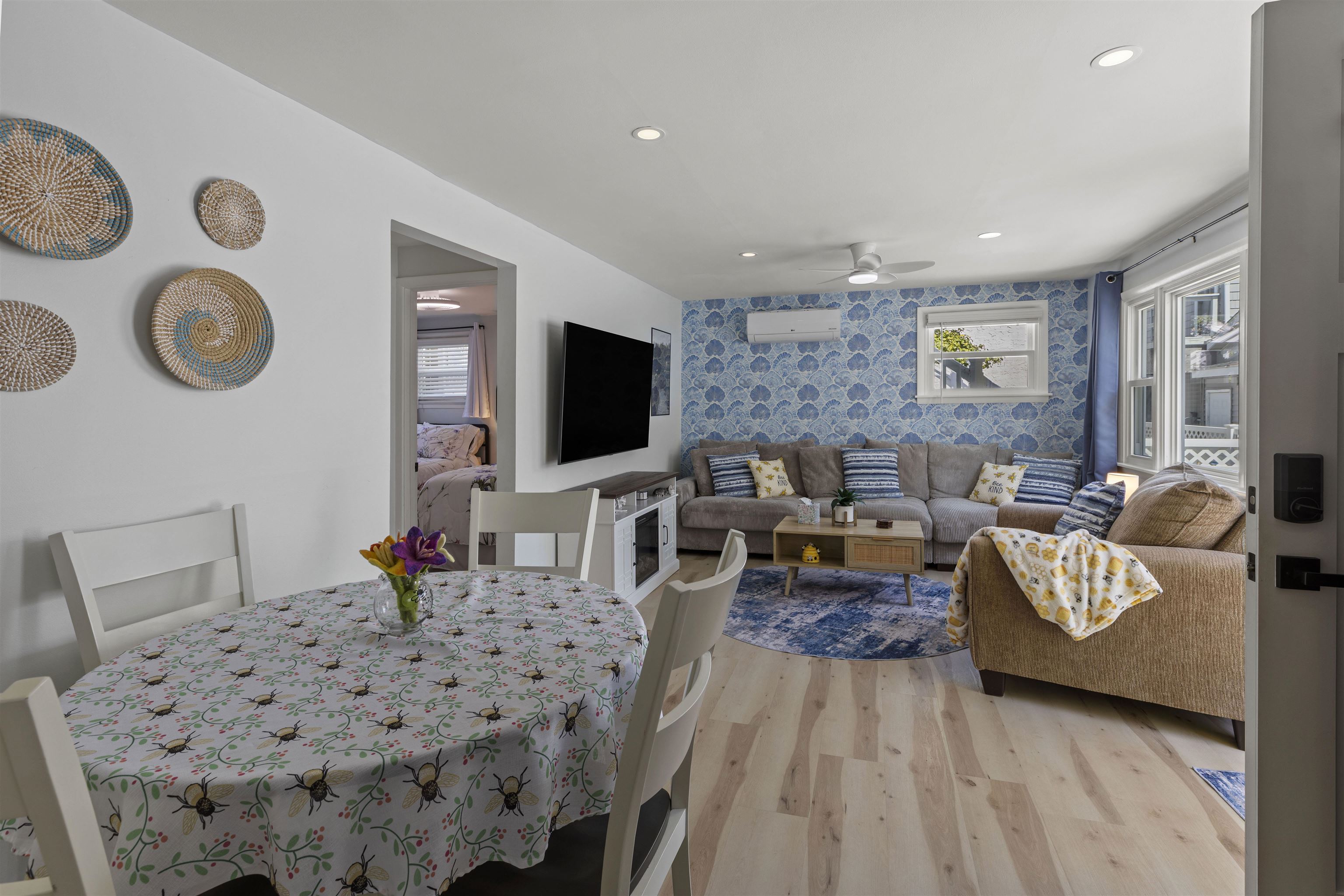 | Located in the desired southern section of Wildwood Crest, Just steps to the beach, 309 E Topeka was totally renovated in 2024 with new roof, windows, electrical panel and siding. Unit B is a two bedroom, one bath open floorplan. Bright and airy, the tastefully decorated open living space is filled with natural light and coastal touches creating a relaxed, vacation-like feel year-round. The kitchen flows easily into the living and dining areas, perfect for casual entertaining or quiet nights in. kitchen comes complete with plenty of cabinets adorned by tile backsplash, solid countertops, and full size stainless steel appliances. Full size new Washer and dryer as well as organized pantry closet with room to store all your items. Both bedrooms offer comfortable retreats, featuring closet organizers and have windows allowing for the natural light to flow through the entire interior space. Bathroom has upgraded tile surround, new vanity, glass shower doors, and new fixtures. Unit B is being conveyed turn key including all furniture, decor accessories kitchen dishware, silverware, cooking tools and small appliances as well as Tv's and electric fireplace. Private Patio seating area is ideal for enjoying ocean breezes and sounds of the sea. Just a short block to the white sandy beaches of Wildwood Crest and close to Cape May and local dining spots, this condo is perfect as a full-time residence, weekend escape, or investment opportunity. Move in ready, you only need to bring your beach chairs and flip flops to start enjoying the coastal lifestyle!