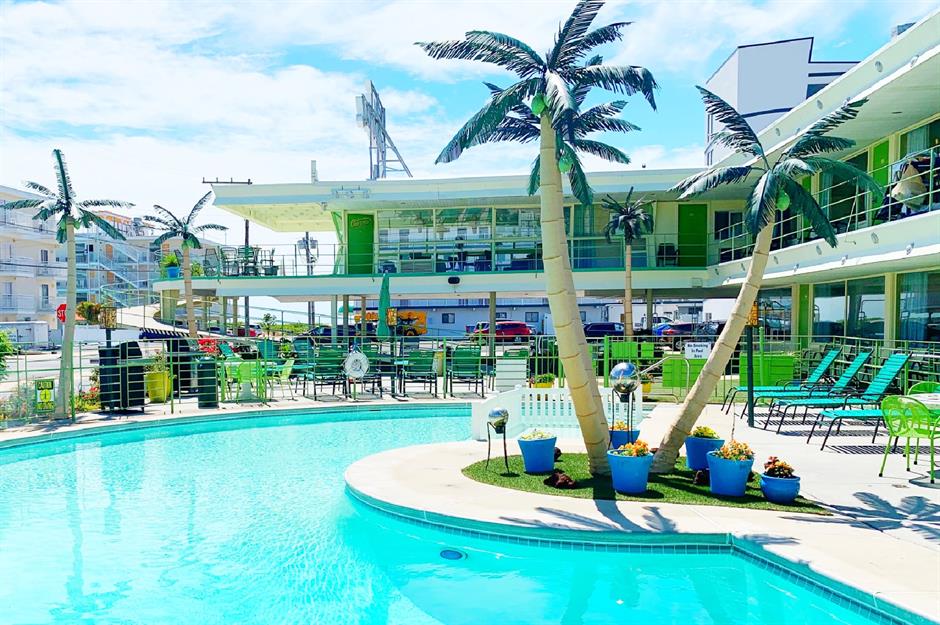 New Jersey’s Wildwood Crest is known for its classic beach town vibes and fascinating strip of mid-century modern inns, known as “Doo Wop” motels. Only two – Chateau Bleu and Caribbean Motel – are protected by the National Register of Historic Places. The latter, which opened in the 1950s, has been restored in brilliantly colourful retro style with plastic palm trees, a crescent-shaped pool, and mid-century furniture. It’s an easy stroll to the beaches and boardwalk, too.