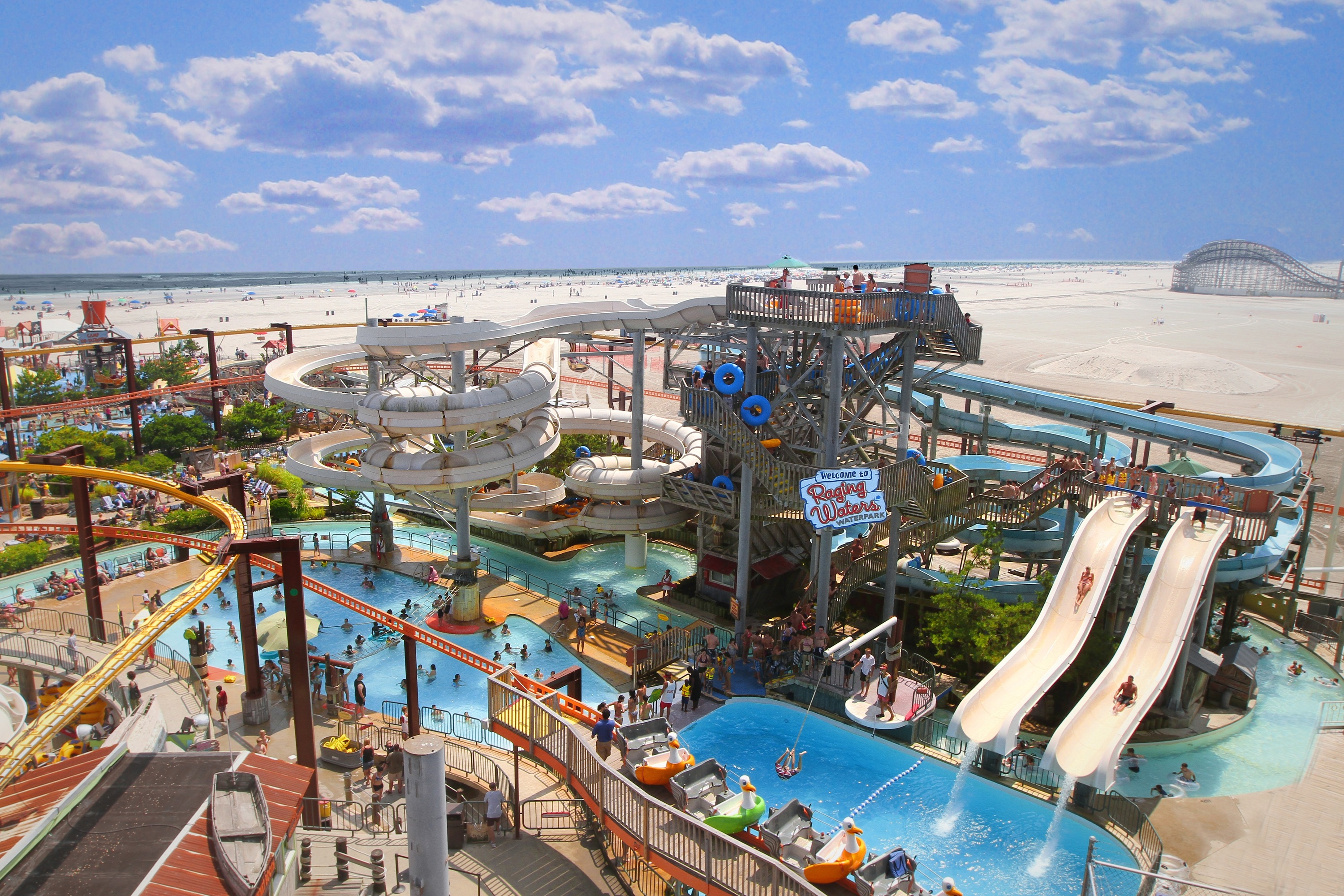 There are three water parks on the Wildwoods Boardwalk. The Morey's Piers Waterpark is one of the most popular, offering several thrilling slides. It is also home to an interactive three-level Camp Kid Tastrophe, a family fountain pool, a lazy river, and cabanas.